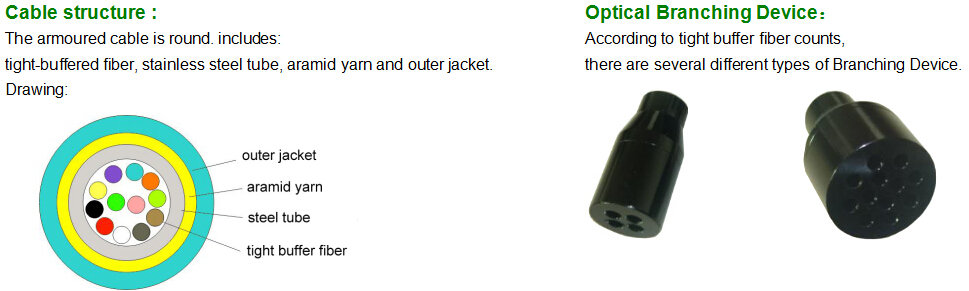 Outer jacket | PVC, LSZH, PE | Minimal Bending radius | ≥20D | |||||