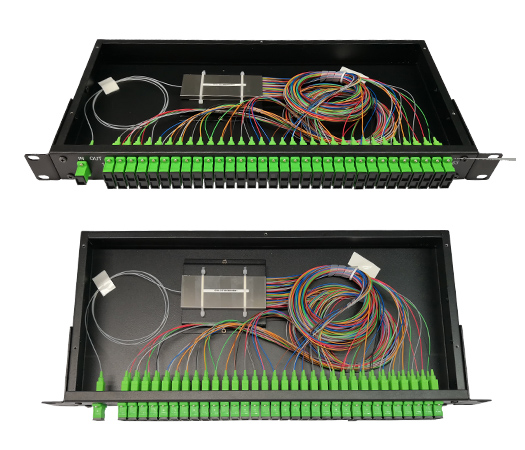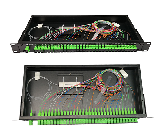 . Can hold up to 1 x 2:32 PLC splitters housed with in a 1U space.
